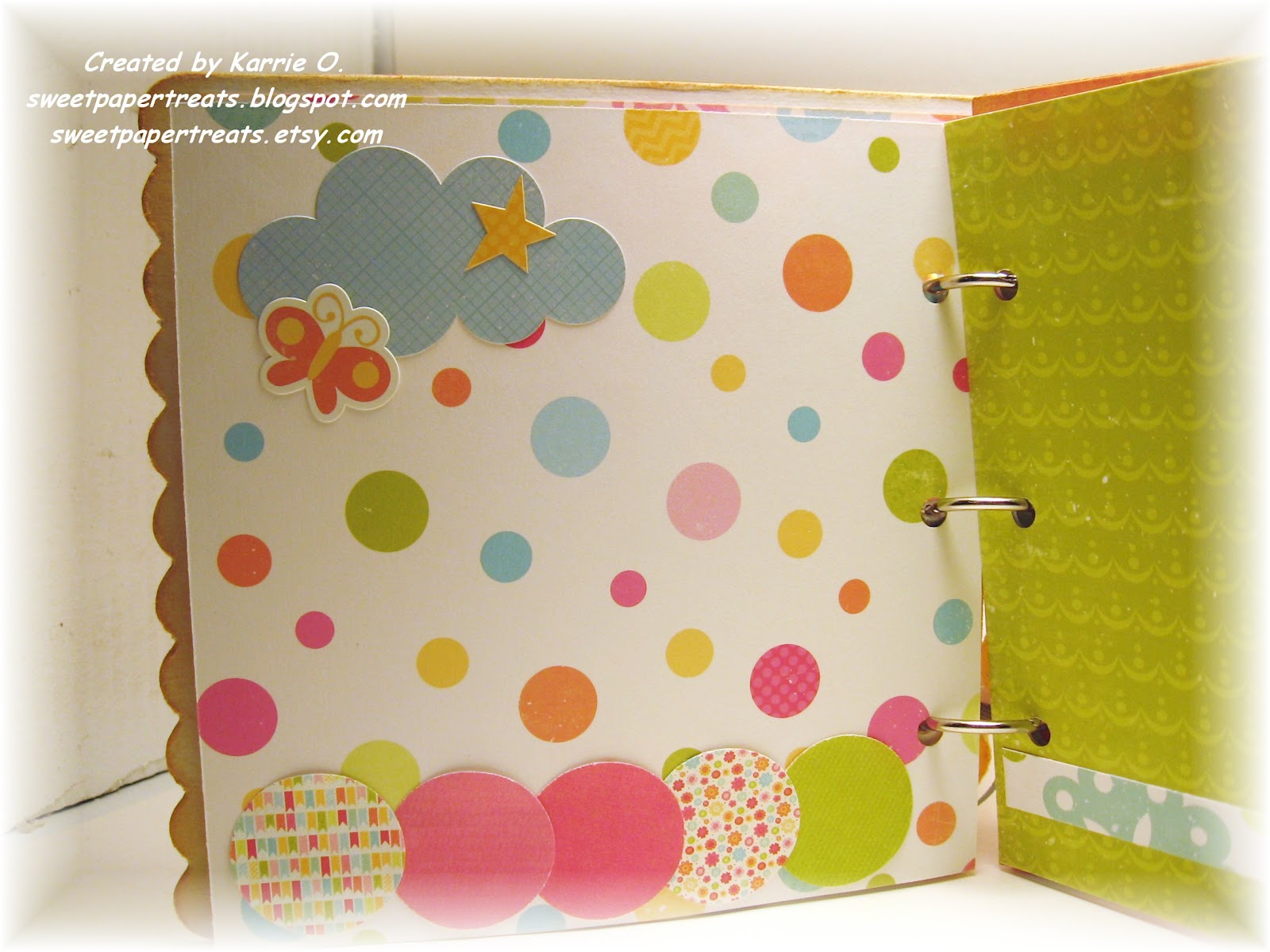This fun mini scrapbook is a 8 1/2 x 5, bound by 3/4" white wire, has 10 decorated pages plus the cover. The cover and back is made with thick cardboard from packaging that I recycled. I used the My Minds Eye - Good Day Sunshine paper and diecuts, Spellbinders diecuts, Cricut diecuts from the Flower Shoppe/Accent Essentials, Sizzix diecuts - leaves, petals, rhinestones, Rangers Liquid Pearls.